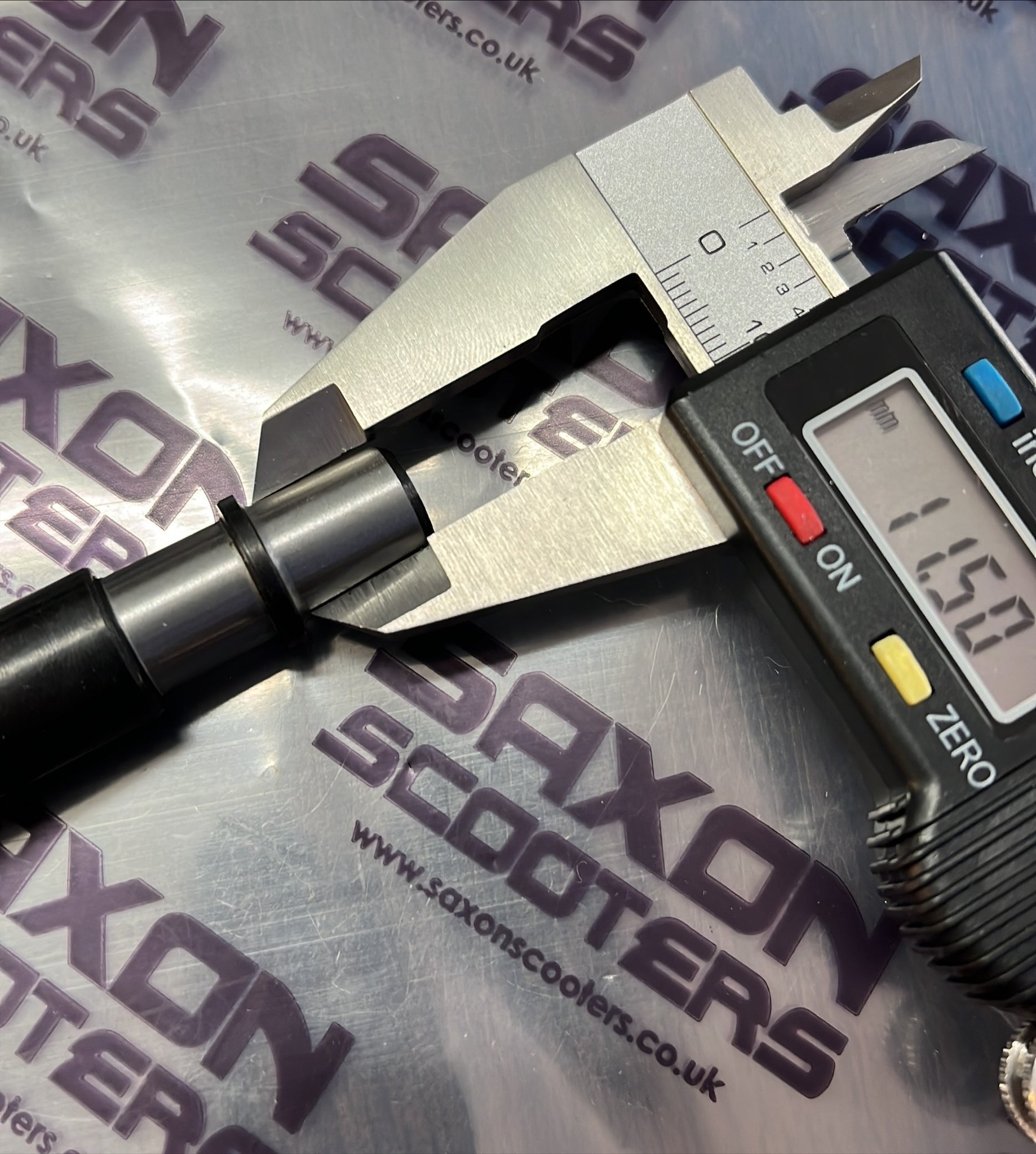 Gear cluster central support shaft, measures 11.5mm on the flywheel side, 11.5mm on the needle bearing surface 15mm on the ball bearing seat, and 12mm on the clutch side